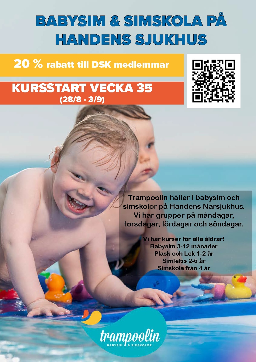 Trampoolin håller i babysim och simskolor på Handens Närsjukhus.