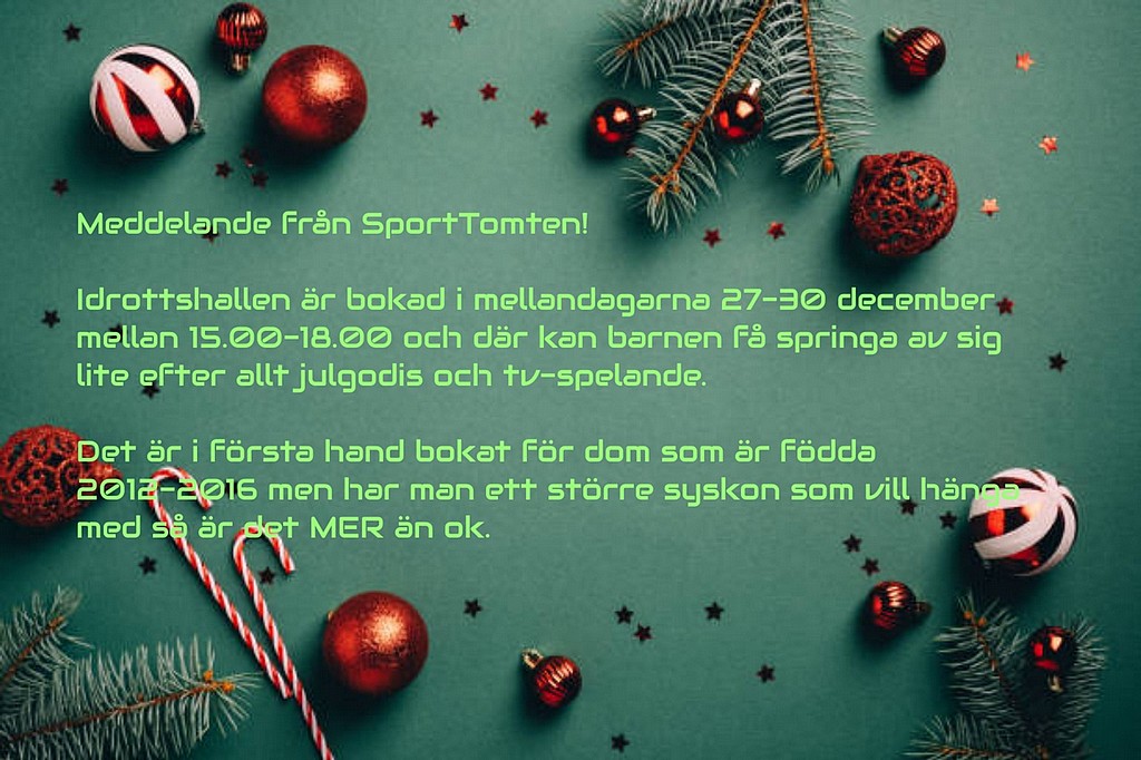 Idrottshallen är bokad i mellandagarna 27-30 december mellan 15.00-18.00 och där kan barnen få springa av sig lite efter allt julgodis och tv-spelande.