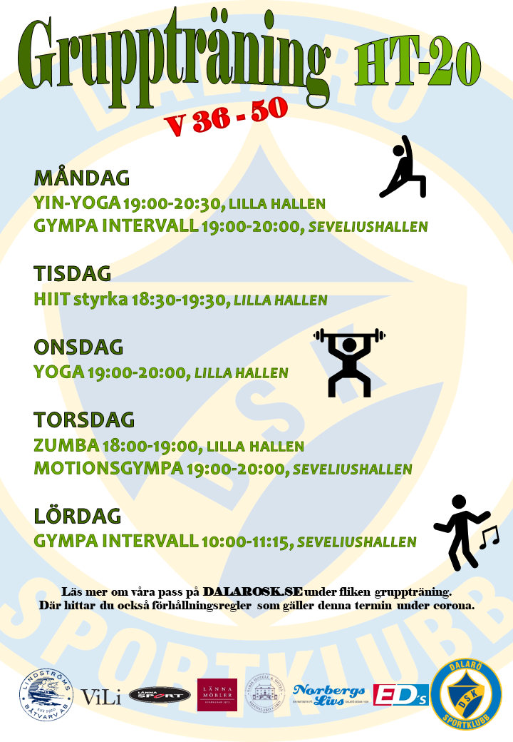 Då är det nästa vecka äntligen dags för terminsstart för gruppträningen i Dalarö SK! Hösten kommer såklart se lite annorlunda ut jämfört med tidigare år men vi kommer göra det bästa av situationen.