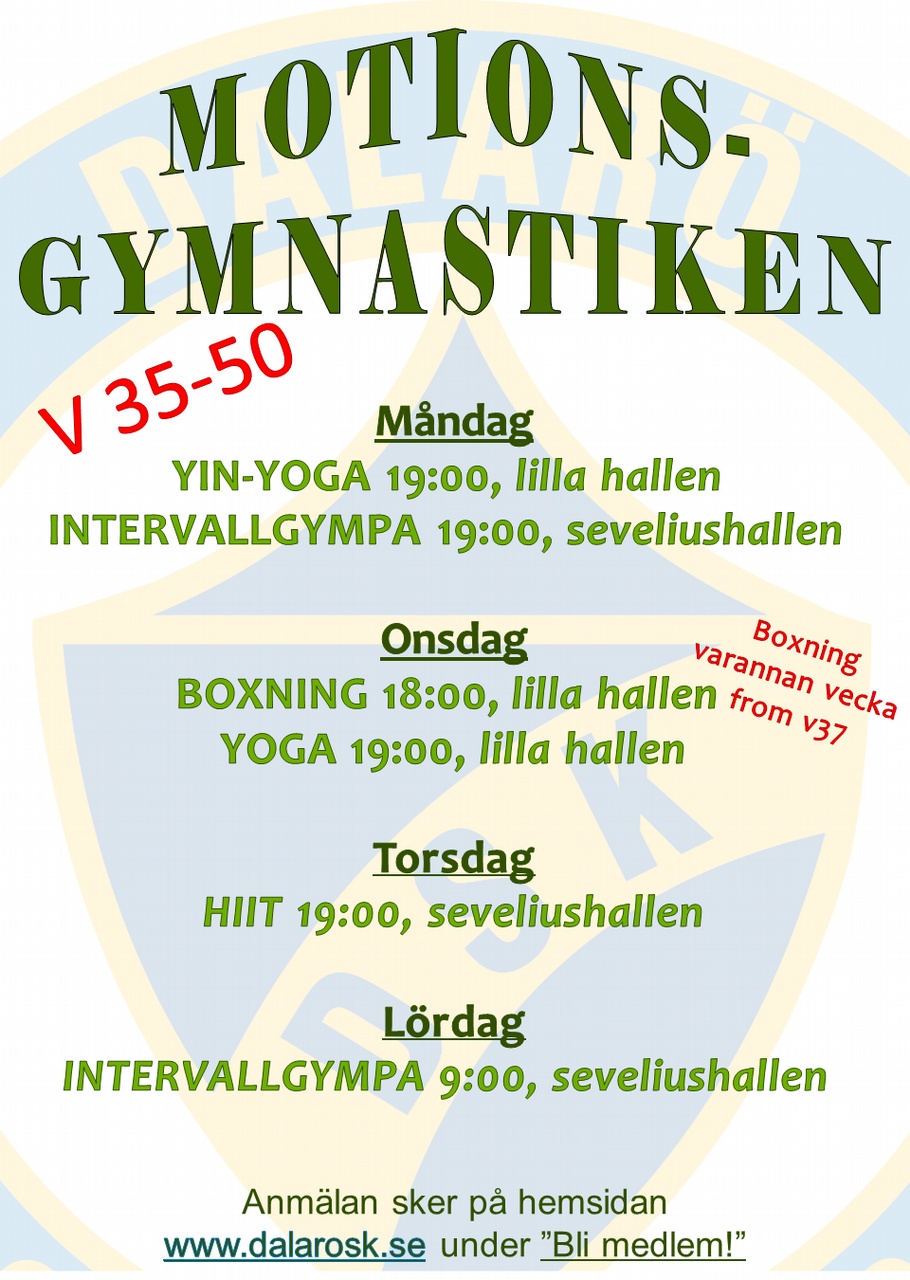 Lördagarnas Cirkelträning är utbytt mot gympa intervall, det innebär att inga redskap delas under träningens gång.