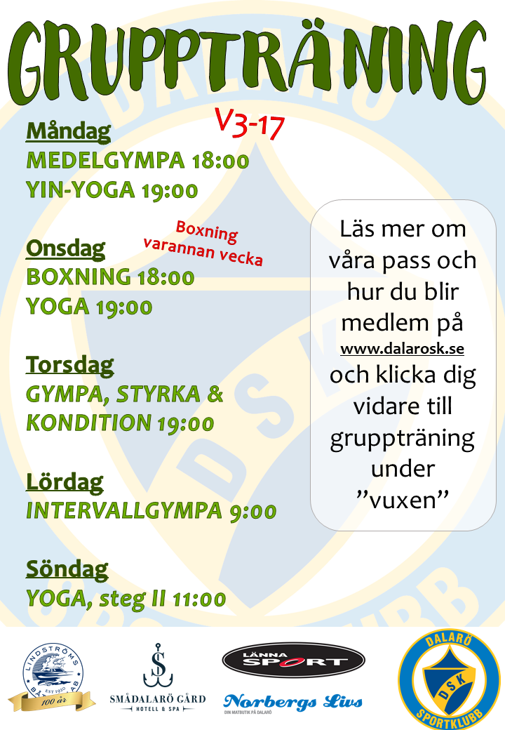Nästa vecka är det dags för terminsstart för gruppträningen, ändringar har skett sen förra terminen så håll utkik och kolla tiderna!Vid frågor och synpunkter, kontakta Ida Lindström genom att klicka här